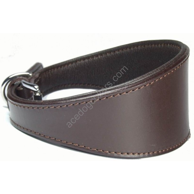 This hound collar is hand-made with high quality best selected leather using traditional methods. The collar is finished with solid chrome fittings and lined with soft cow leather for the comfort and protection of your dogs fur and skin. A classic, simple and tasteful design. All Ace leather dog collars are hand-cut & hand-stitched.