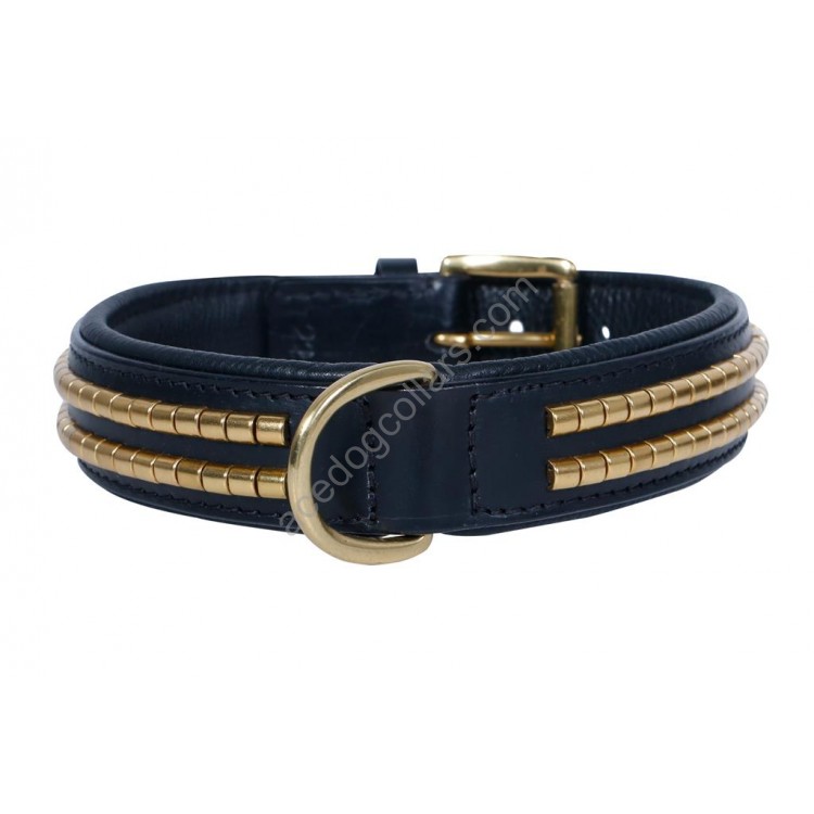 This Ace leather dog collar is both classic and eye catching. Hard wearing due to the anti-run twin needle method used. The dog collar is double ply leather and all fittings are quality solid brass. Re-enforced joins with both stitching and rivets. Strong full chrome D-ring for secure hold and strength