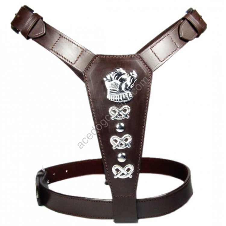 This Ace harness is both classic and eye catching. Hard wearing due to the anti-run twin needle method used. A simple, classic and timeless harness. The harness is double ply leather and all fittings are quality solid chrome.